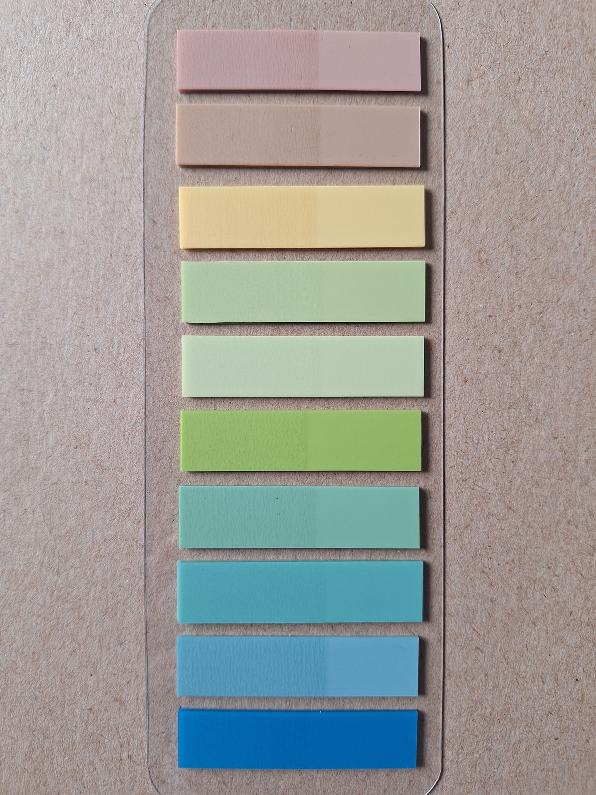 Contiene 200 unidades de hojitas estilo Post it en 10 colores surtidos.