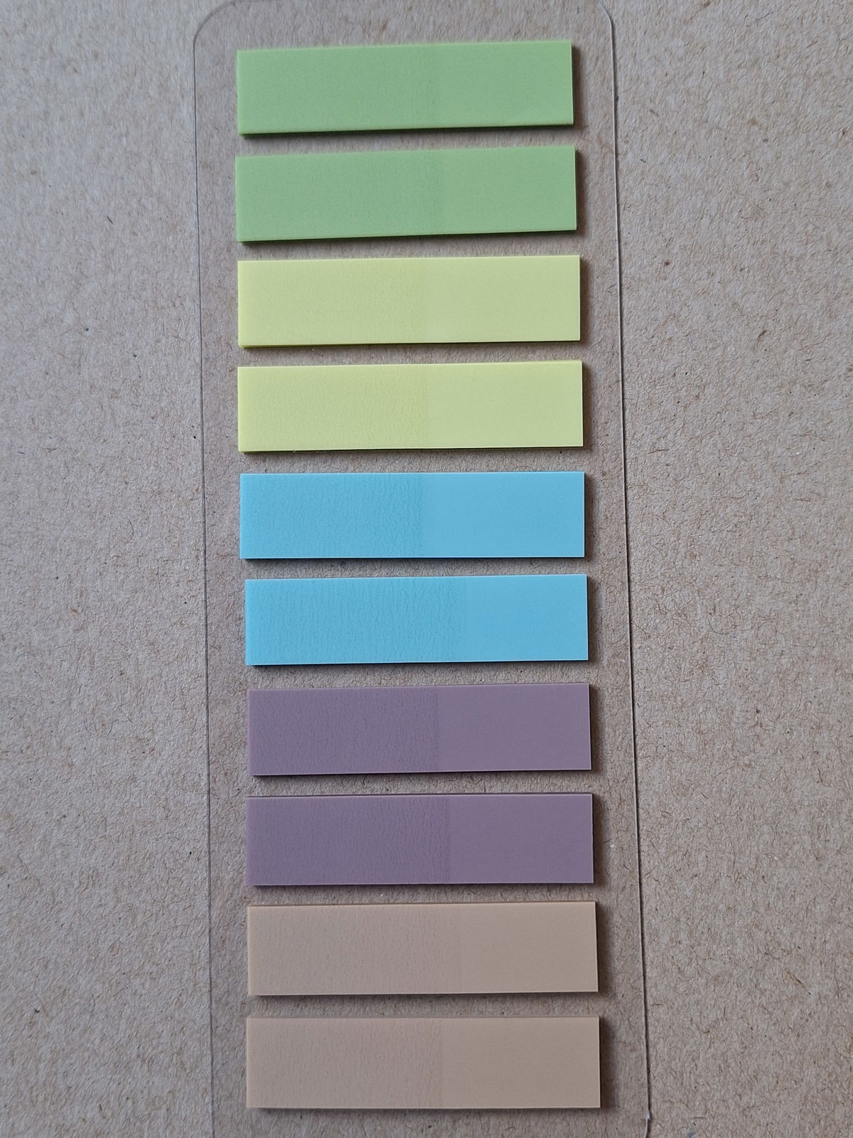 Contiene 200 unidades de hojitas estilo Post it en 10 colores surtidos.