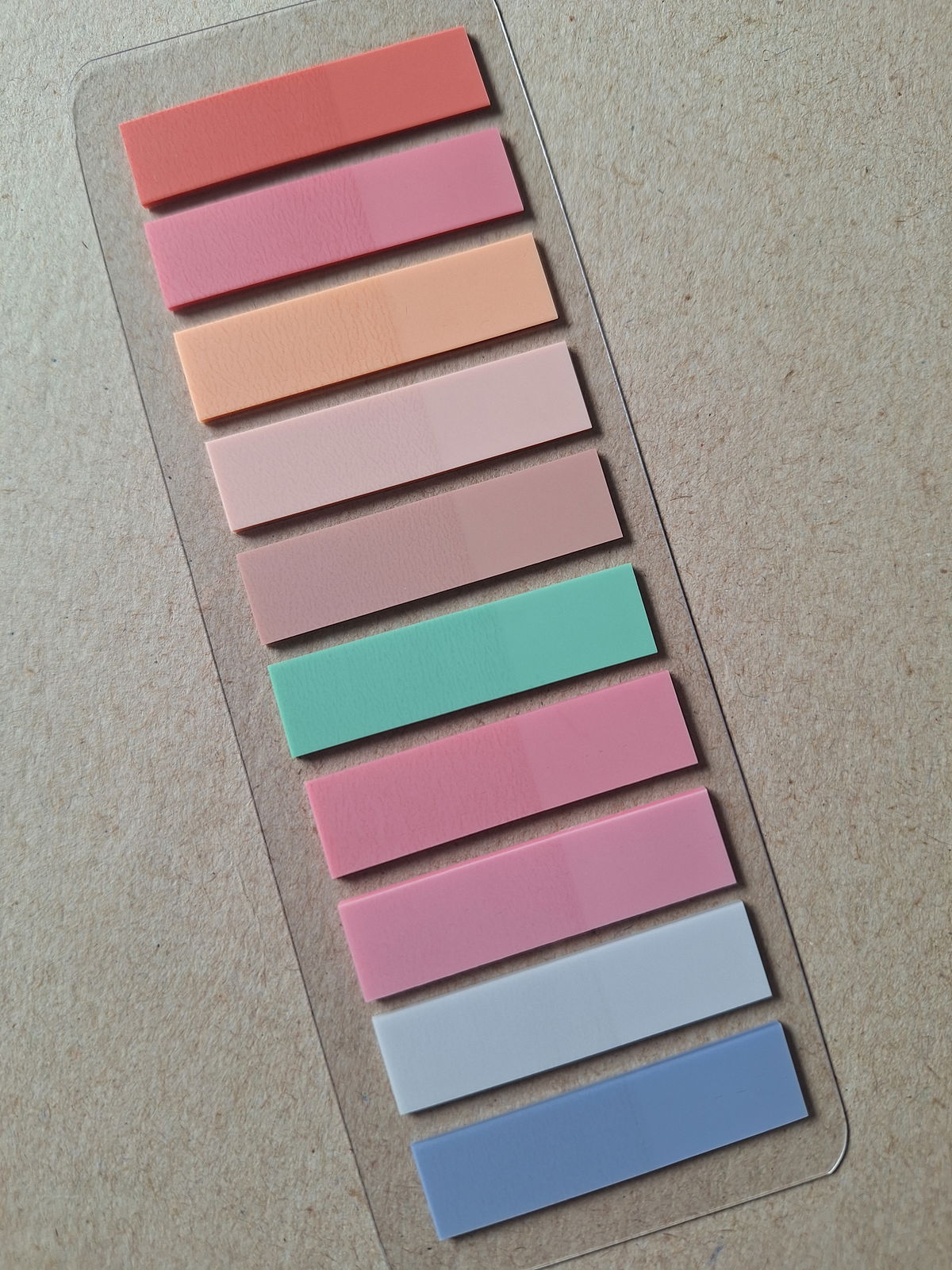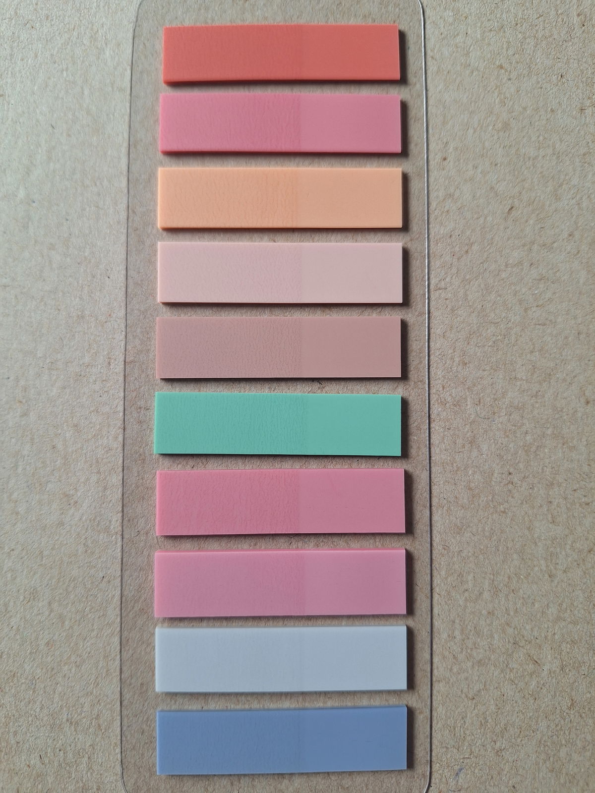 Contiene 200 unidades de hojitas estilo Post it en 10 colores surtidos.