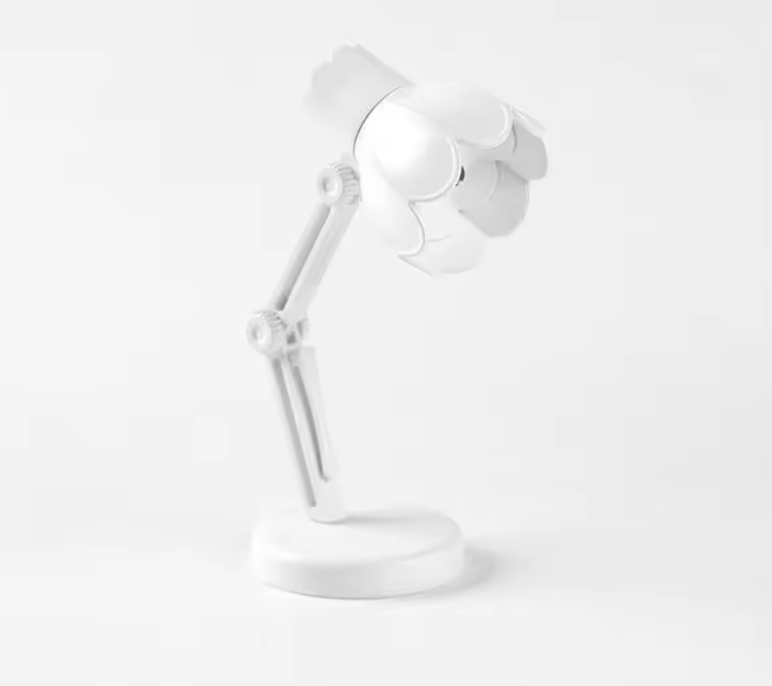 Mini lampara de lectura estilo flor color blanco, a pilas con base redonda imantada removible y broche para sujetar al libro. Vas a poder disfrutar de leer tu lectura aún en la oscuridad!
