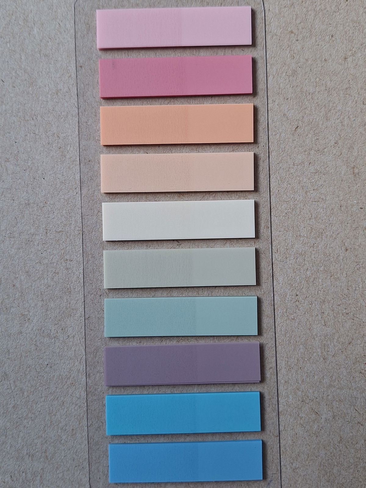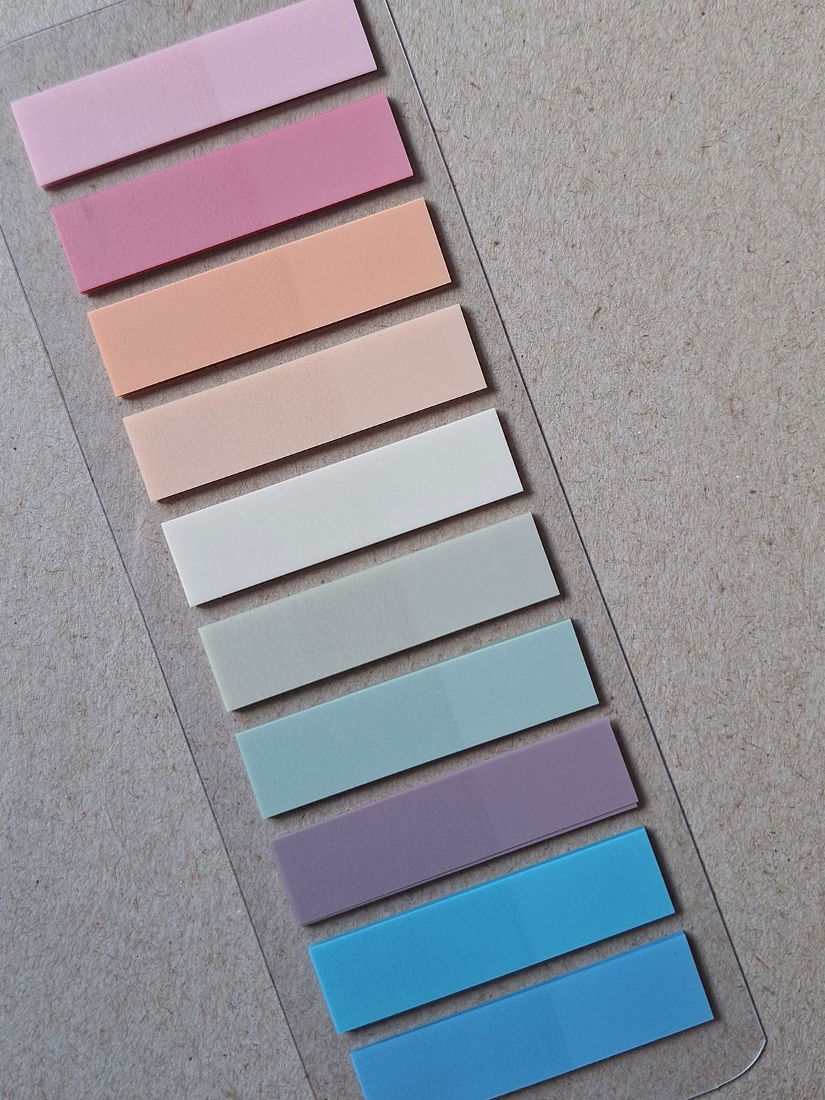 Contiene 200 unidades de hojitas estilo Post it en 10 colores surtidos.
