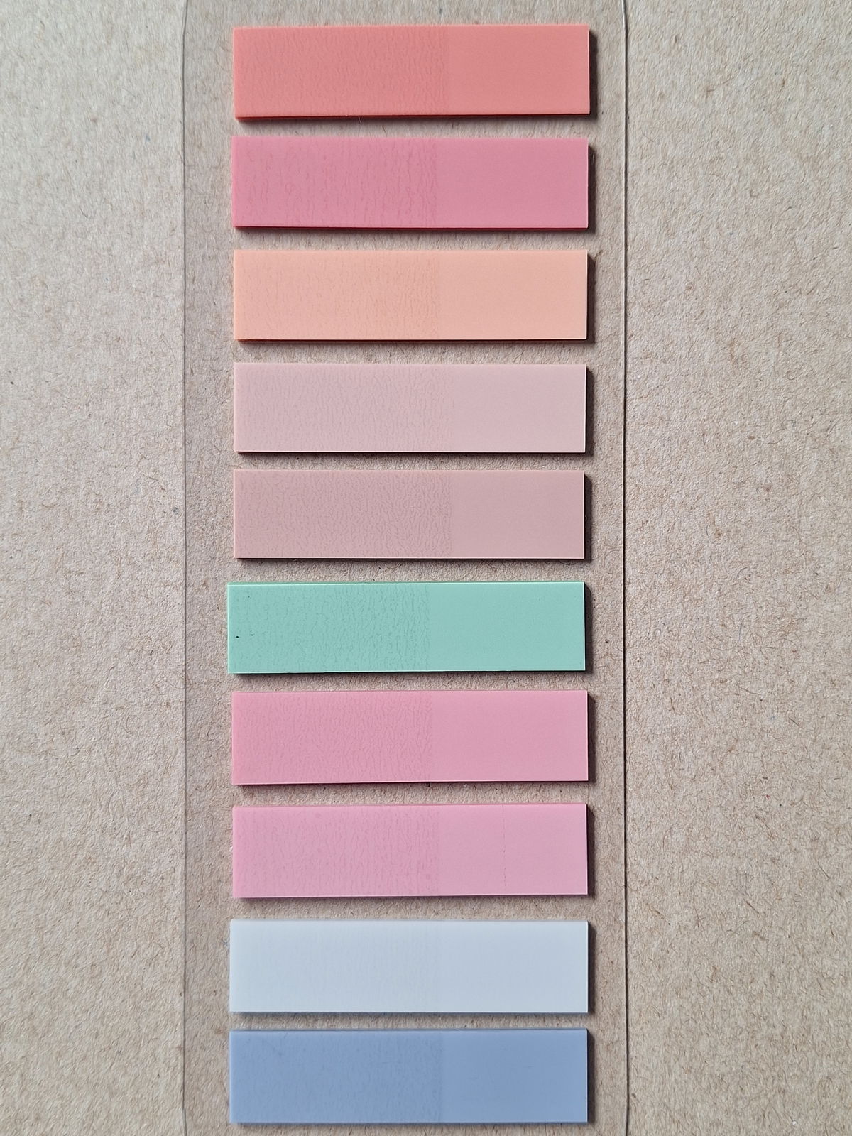 Contiene 200 unidades de hojitas estilo Post it en 10 colores surtidos.