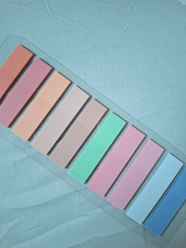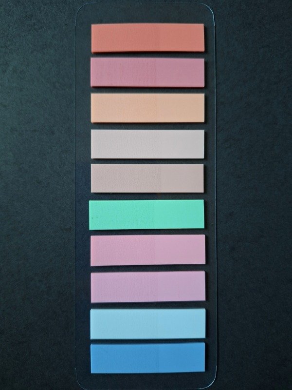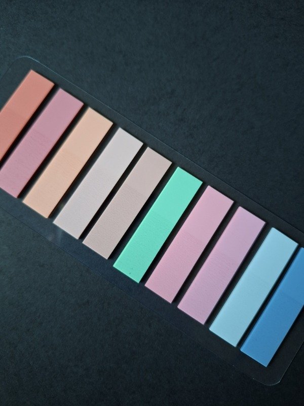 Contiene 200 unidades de hojitas estilo Post it en 10 colores surtidos.