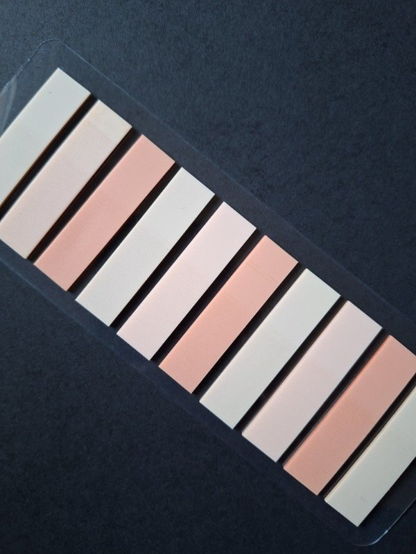 Contiene 200 unidades de hojitas estilo Post it en 10 colores surtidos.