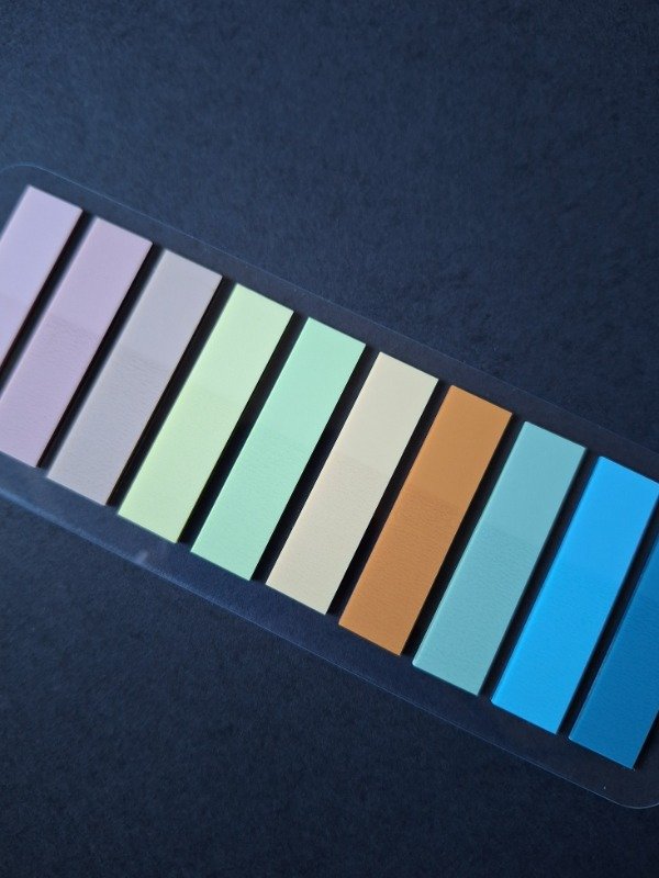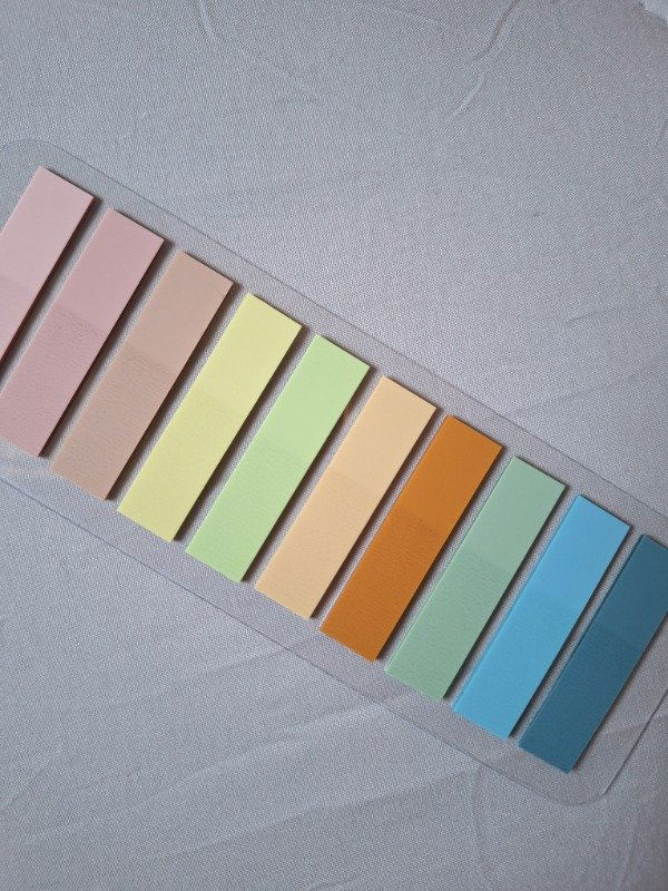 Contiene 200 unidades de hojitas estilo Post it en 10 colores surtidos.