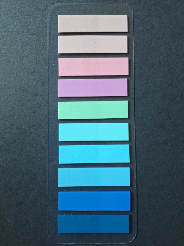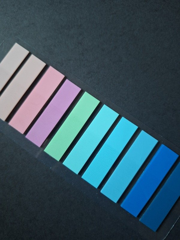 Contiene 200 unidades de hojitas estilo Post it en 10 colores surtidos.