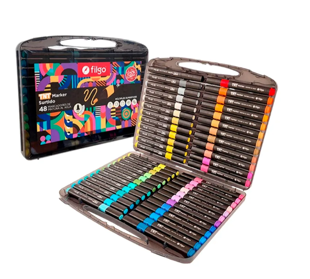 VALIJA CONTIENE 48 UNIDADES DE MARCADORES ACRILICOS